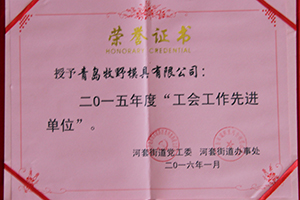 青島牧野模具有限公司獲得青島紅島經(jīng)濟(jì)區(qū)二〇一五年度企業(yè)工會(huì)工作先進(jìn)單位;