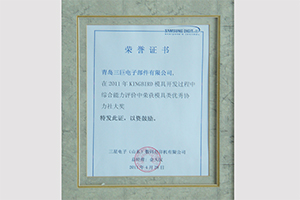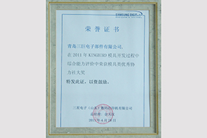 青島三巨電子部件有限公司在三星電子(山東)數(shù)碼打印機(jī)有限公司舉辦的KINGBIRD模具開發(fā)過程中綜合能力評(píng)價(jià)獲得模具類優(yōu)秀協(xié)力社大獎(jiǎng);